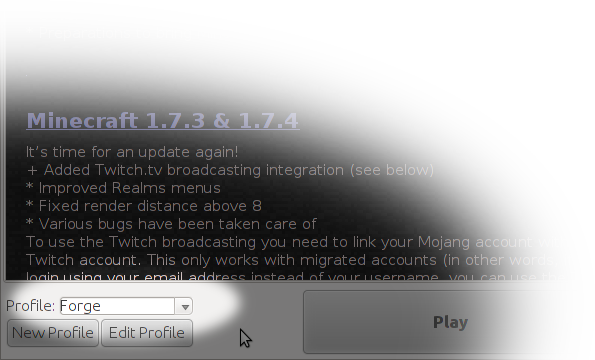 Nos aparecerá un perfil nuevo: Forge. Hay que ejecutarlo (darle al play) al menos una vez.